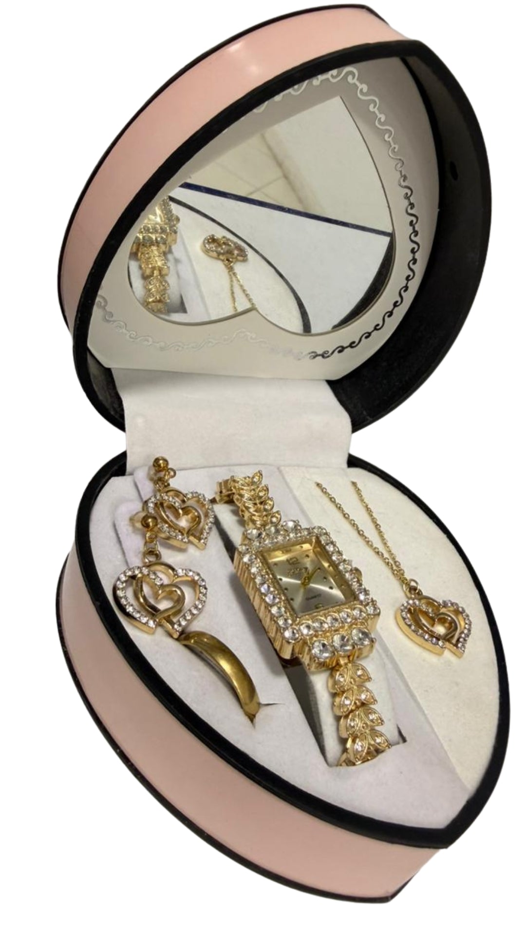 Gift Set Box Stainless Steel Necklace Earrings Ring Red Peach Heart Gift Box Holiday Light Luxury Women's Watch Set